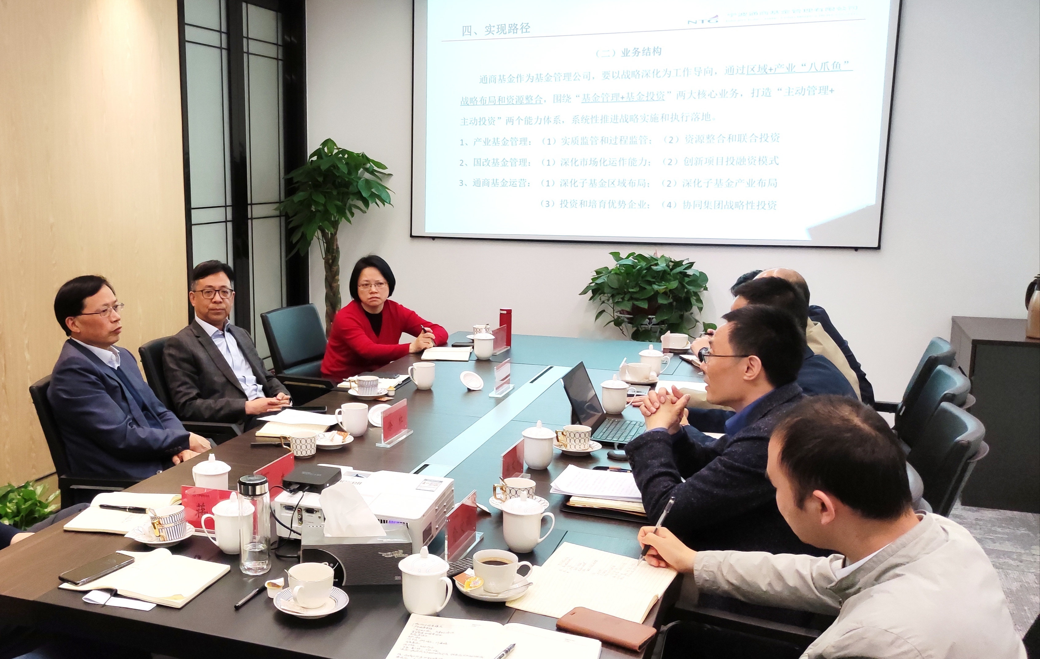 在寧波通商基金管理有限公司,徐紅主任詳細聽取了通商基金使命任務、基金架構、運作情況、下步思路等相關情況的匯報。通商基金自2020年成立以來,積極承接并做好政策類基金、國資國企改革基金和通商創投三大母基金的分類管理,并圍繞“基金管理+基金投資”兩大核心業務,打造“主動管理+主動投資”兩個能力體系,形成了“1-2-3”業務戰略體系,系統性推進市委市政府、市國資委及通商集團的戰略實施和執行落地。徐紅主任對通商基金領導班子的工作表示了充分肯定,同時強調,通商基金是通商集團實現市委市政府所賦予功能的核心載體,具有特殊的使命及責任,市國資委將對公司經營機制的探索予以支持。在“十四五”期間,希望通商基金在“主動管理、主動投資”的基礎上,更加主動對接黨委政府、主動對接市場、主動對接國有企業和區縣資源,進一步做強做大,對標對表,探索形成國有基金管理公司的寧波模式,成為全省一流的基金投資管理公司。