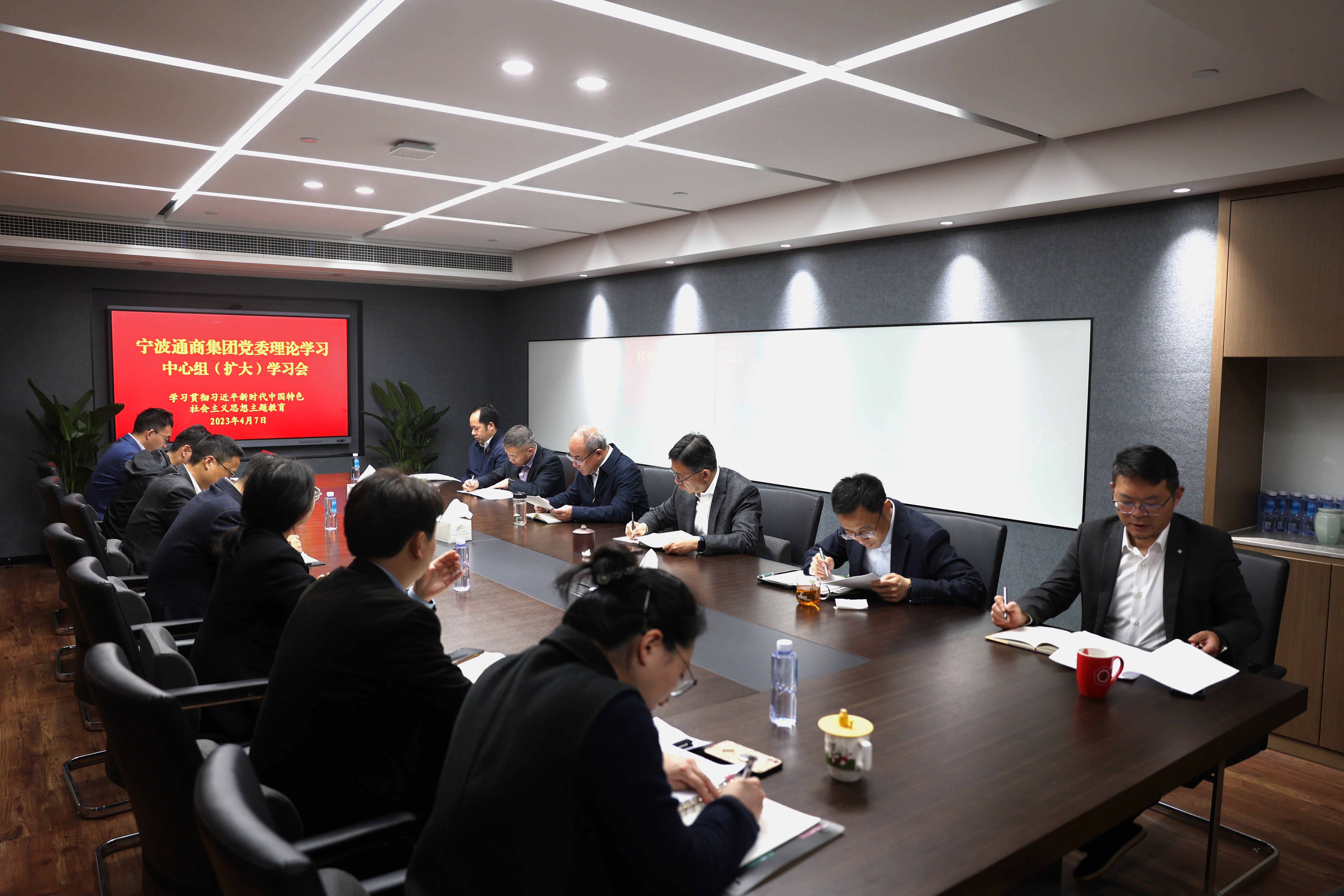 4月7日上午,寧波通商集團(tuán)黨委召開理論學(xué)習(xí)中心組(擴(kuò)大)學(xué)習(xí)會(huì),第一時(shí)間傳達(dá)學(xué)習(xí)中央、省、市關(guān)于深入學(xué)習(xí)貫徹習(xí)近平新時(shí)代中國(guó)特色社會(huì)主義思想主題教育的有關(guān)會(huì)議精神和要求,研究貫徹落實(shí)方案。集團(tuán)黨委書記、董事長(zhǎng)宋達(dá)軍主持會(huì)議并講話,集團(tuán)領(lǐng)導(dǎo)班子、部門及子公司負(fù)責(zé)人參加。
