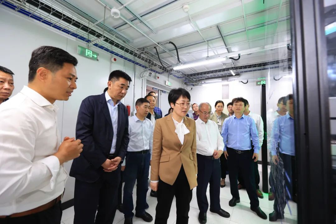 金珊一行首先實地查看了智算集群機房和超算集群機房,詳細(xì)了解了機房內(nèi)設(shè)備系統(tǒng)運行使用情況和超算中心的建設(shè)歷程、功能定位、運營管理、應(yīng)用場景等情況。